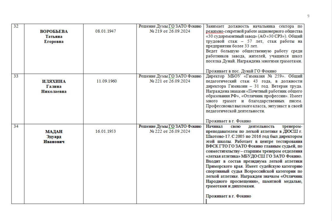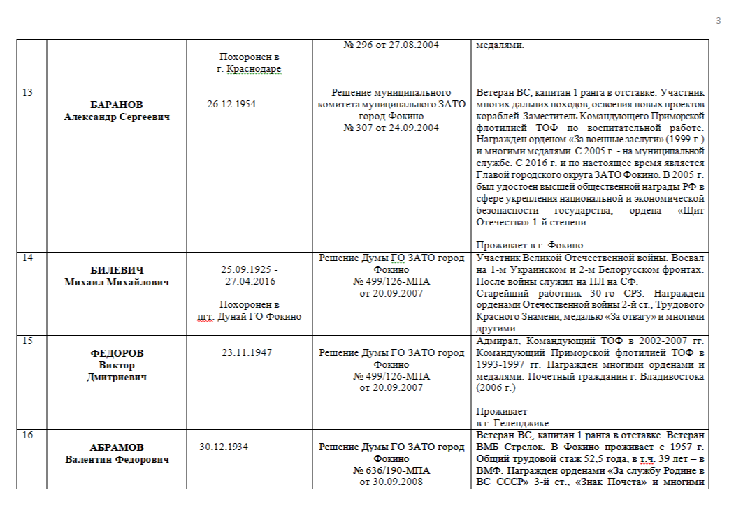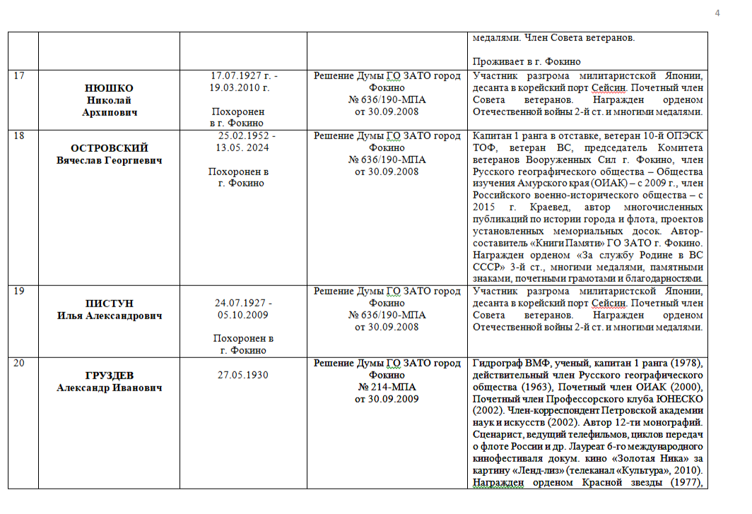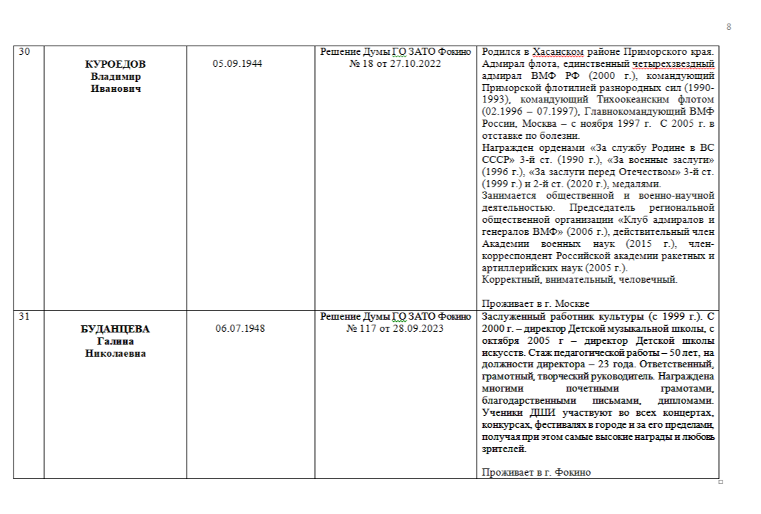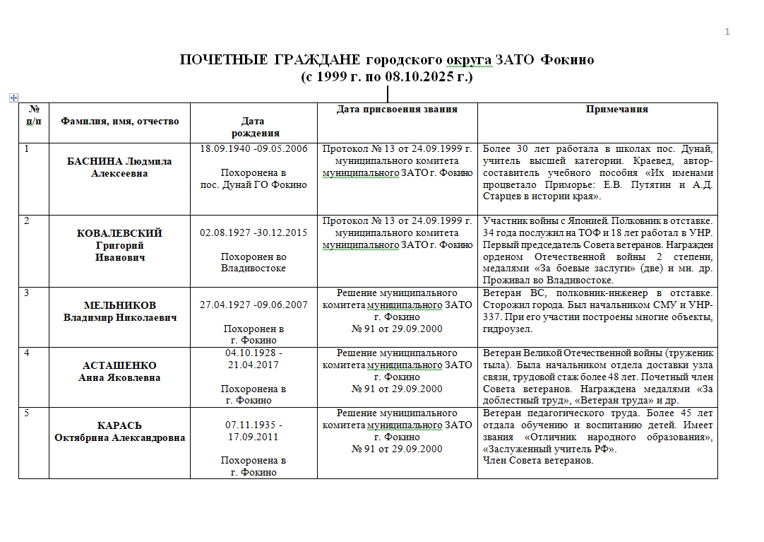 ПОЧЁТНЫЕ ГРАЖДАНЕ ГОРОДСКОГО ОКРУГА ЗАТО ФОКИНО